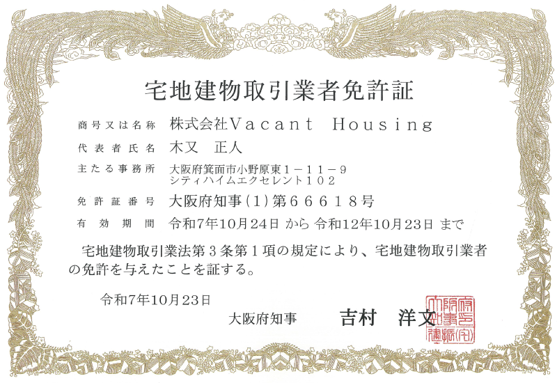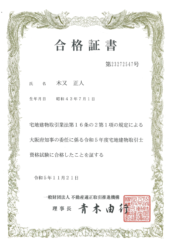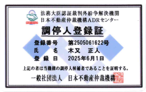 宅地建物取引業大阪府知事(1) 第66618号 / 社団法人日本不動産仲裁機構調停人 第2505061622