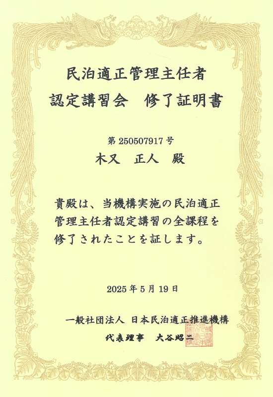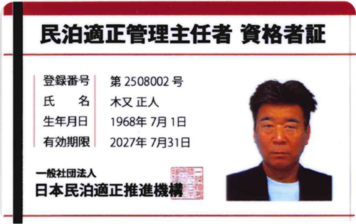 保有資格:民泊適正管理主任者
