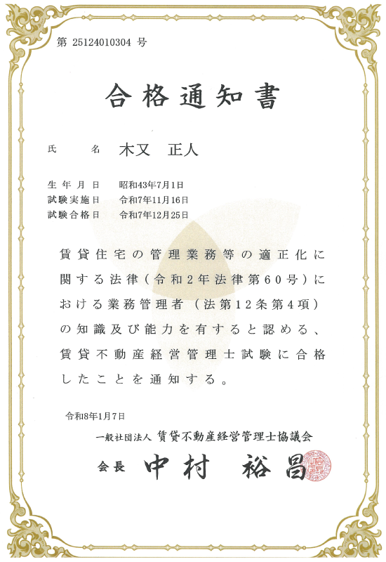 保有資格:不動産相談員・敷金診断士